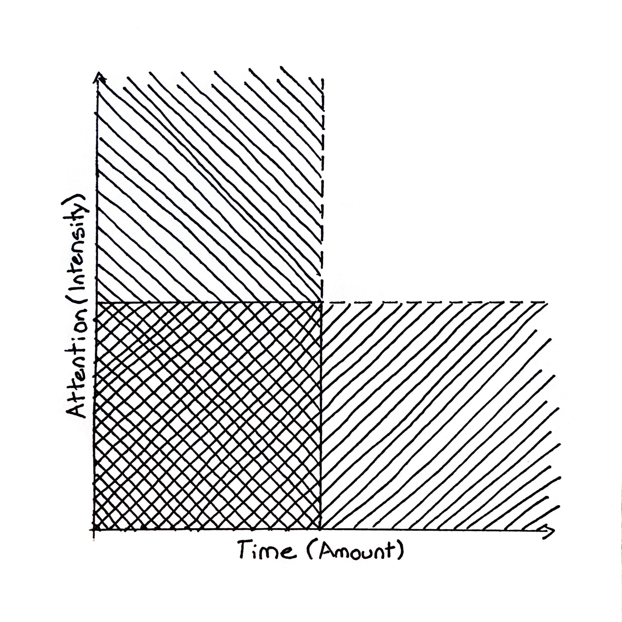 The intersection of attention’s intensity and time fundamentally shapes our lived experience. In fact, our most valuable resource might be “Attention-Time.” We should be strategic about how we spend it—investing in the activities and relationships most meaningful to us. There is only so much of it in a lifetime after all.